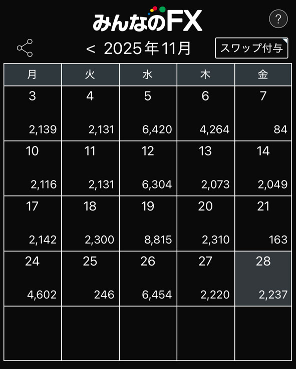 FXスワップ生活の「月間収益カレンダー」を報告します。