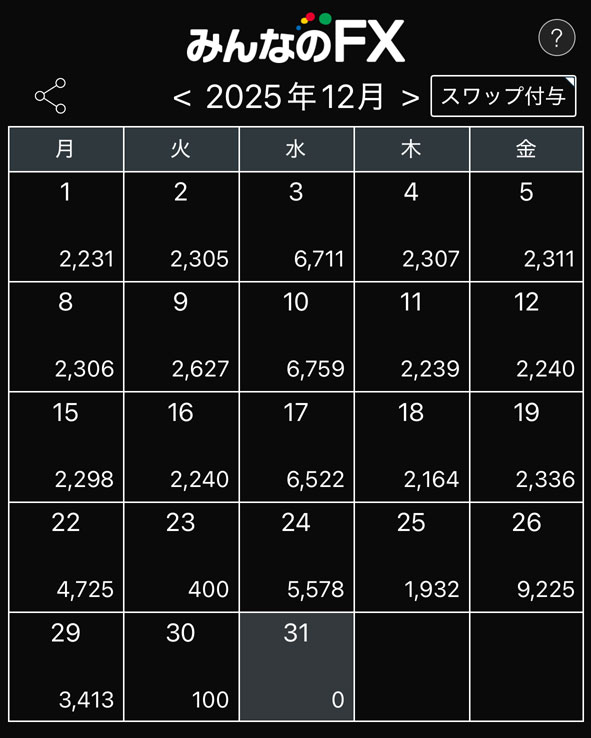 FXスワップ生活の「月間収益カレンダー」を報告します。