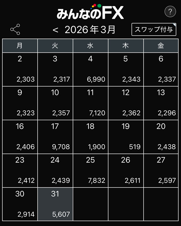 FXスワップ生活の「月間収益カレンダー」を報告します。