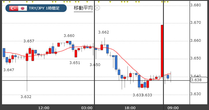 トルコリラ3.63円台!