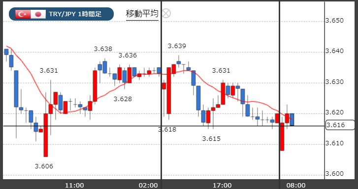 トルコリラ3.61円台!