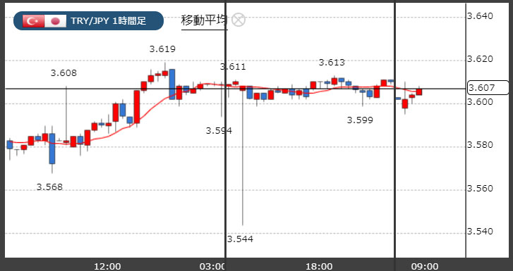 トルコリラ3.6円台キープ。