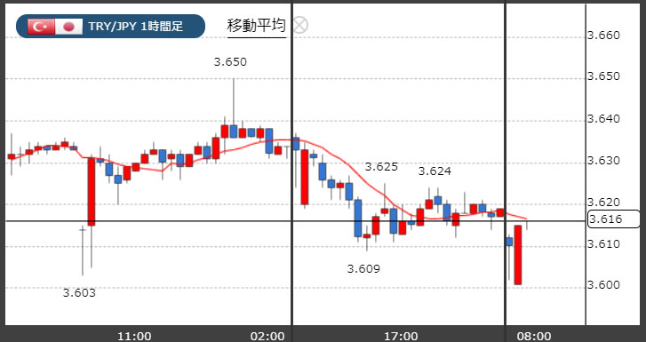 トルコリラ3.61円台!