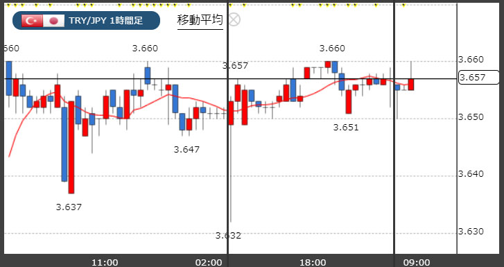 トルコリラ3.65円台!