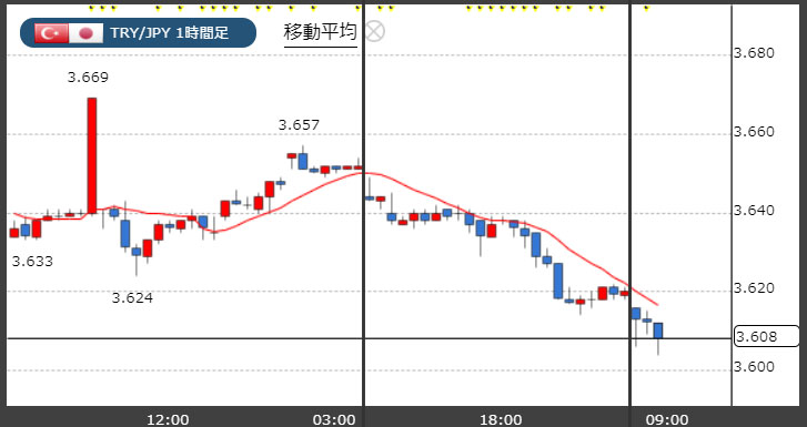 トルコリラ3.60円台!