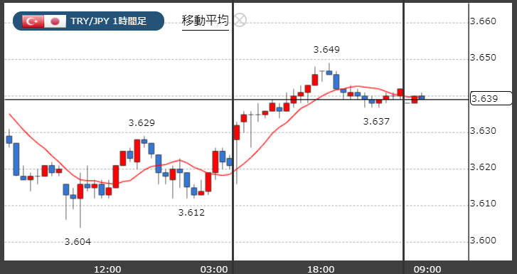 トルコリラ一時3.65付近。