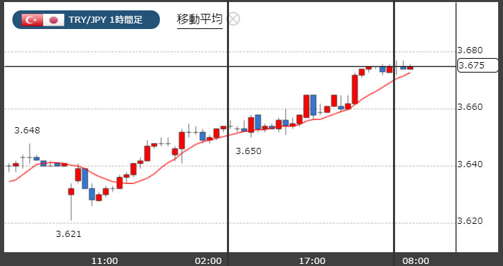 トルコリラ3.67円台のじり高。