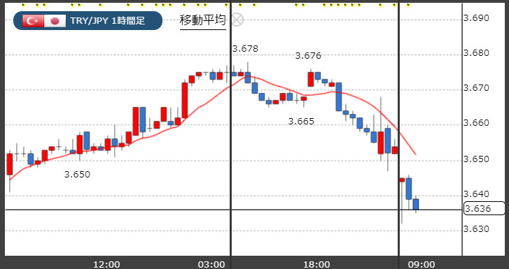 トルコリラ3.63円台!