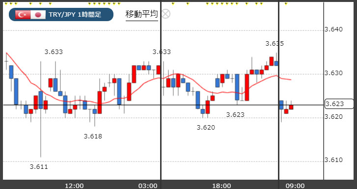トルコリラ3.62円台!
