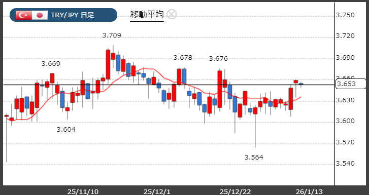 トルコリラは3.65円台!