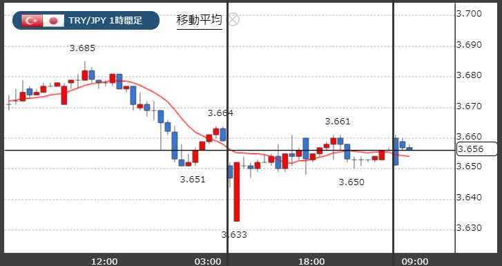 トルコリラ3.65円台!