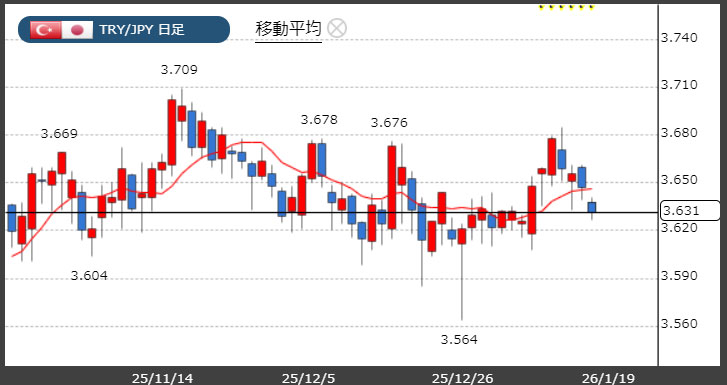トルコリラ3.63円台!