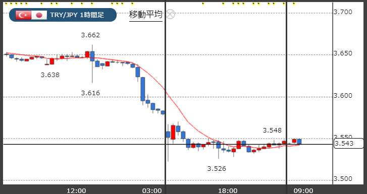 スイスフラン/トルコリラが最高値となったため、売りで購入しました。