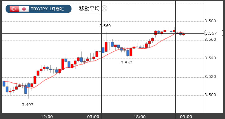トルコリラ3.56円台!