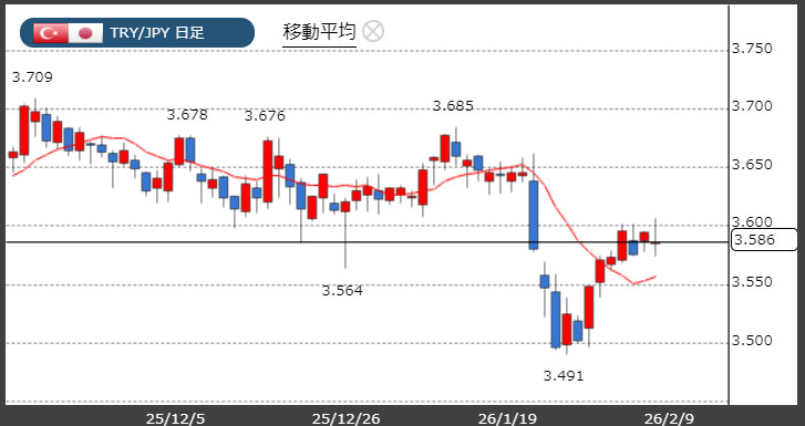トルコリラ3.58円台!