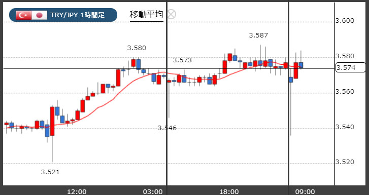 トルコリラ3.57円台!