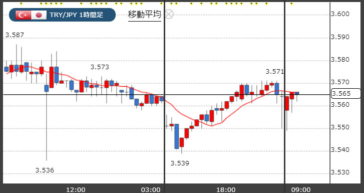 トルコリラ3.56円台!