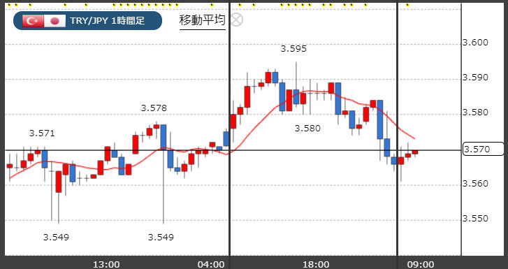 トルコリラ3.57円台!