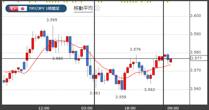 トルコリラ3.57円台!