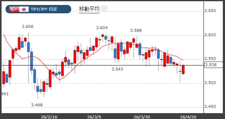トルコリラ3.53円台!