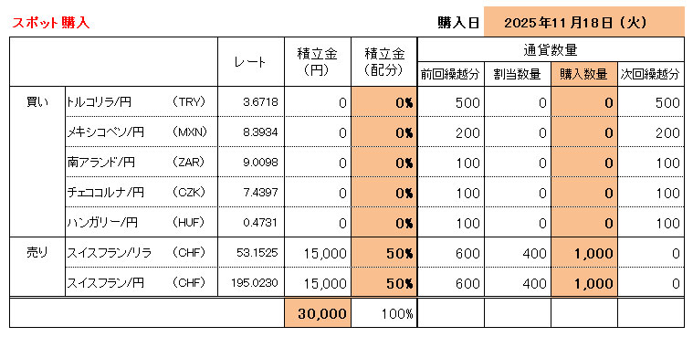 繰り越しで貯めていたスイスフランの売りをスポット購入!
