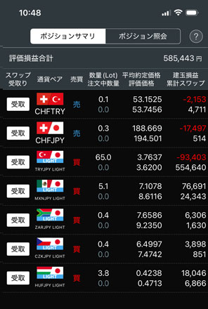 「スイスフラン/トルコリラ」のスワップ貯まりがいい感じ。