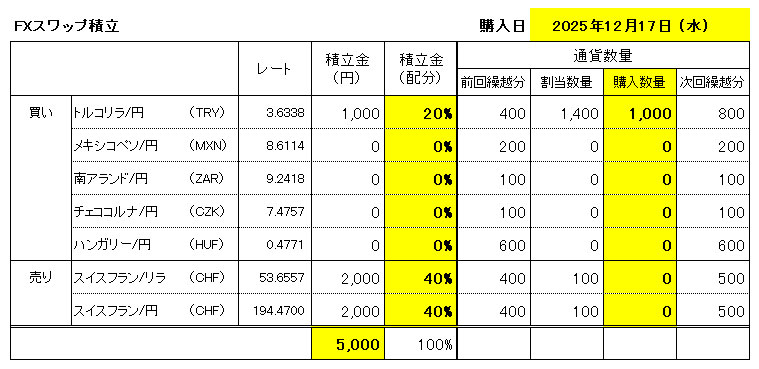 毎週水曜日は「FXスワップ生活への積立日」です。