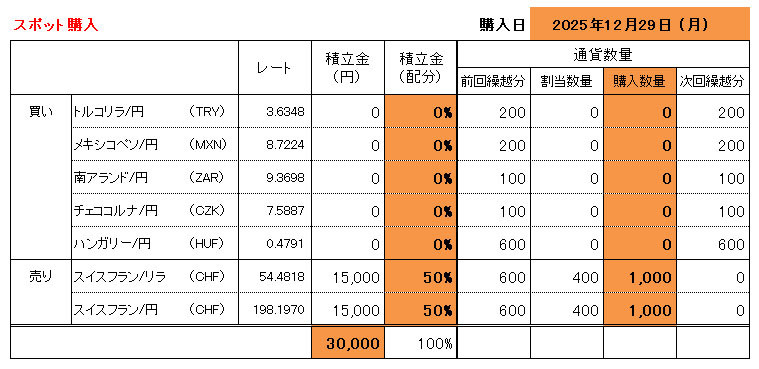 繰り越しで貯めていたスイスフランの売りをスポット購入!